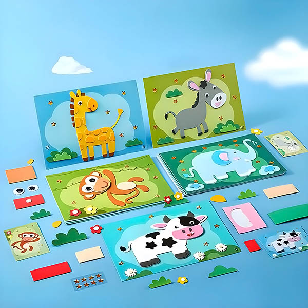 Non sono necessarie colla o forbici, quindi non dovete preoccuparvi che il vostro bambino si faccia male. Basta staccare l’adesivo e incollarlo sul cartone, strato per strato, secondo l’immagine richiesta.